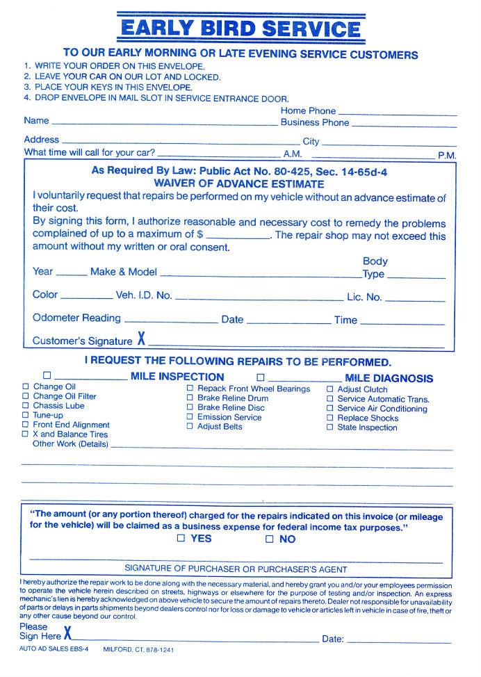 24-Hour Early Bird Service Form