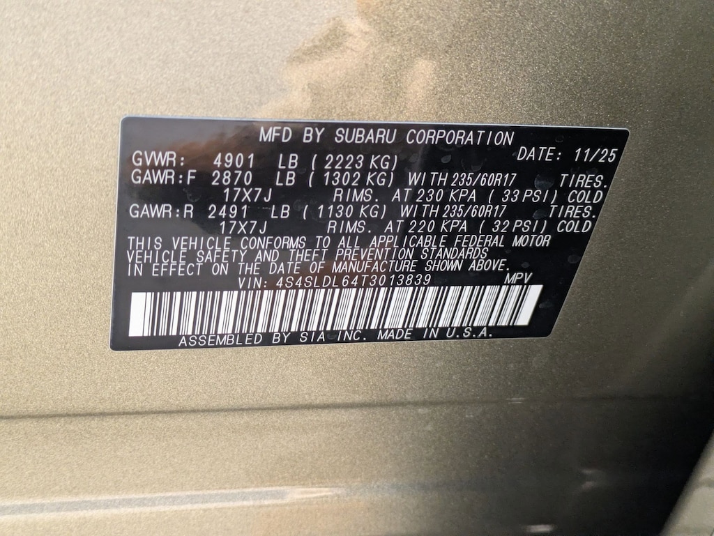 All vehicle specifications, prices and equipment are subject to change without notice. See above for information on purchase financing and lease program expiration dates. Prices and payments (including the amount down payment) do not include applicable, tax, title, license, dealer conveyance fee, documentation fees, registration fees, $175 Supply Chain Hardship fee as assessed to the retailer by Subaru of America, emissions testing charges, or other fees required by law or lending organizations. The estimated payments may not include upfront finance charges that must be paid to be eligible for the purchase financing program used to estimate the APR and payments. Listed Annual Percentage Rates are provided for the selected purchase financing or lease programs available on the current date. Program expiration dates reflect currently announced program end dates, but these programs are subject to change at any time.